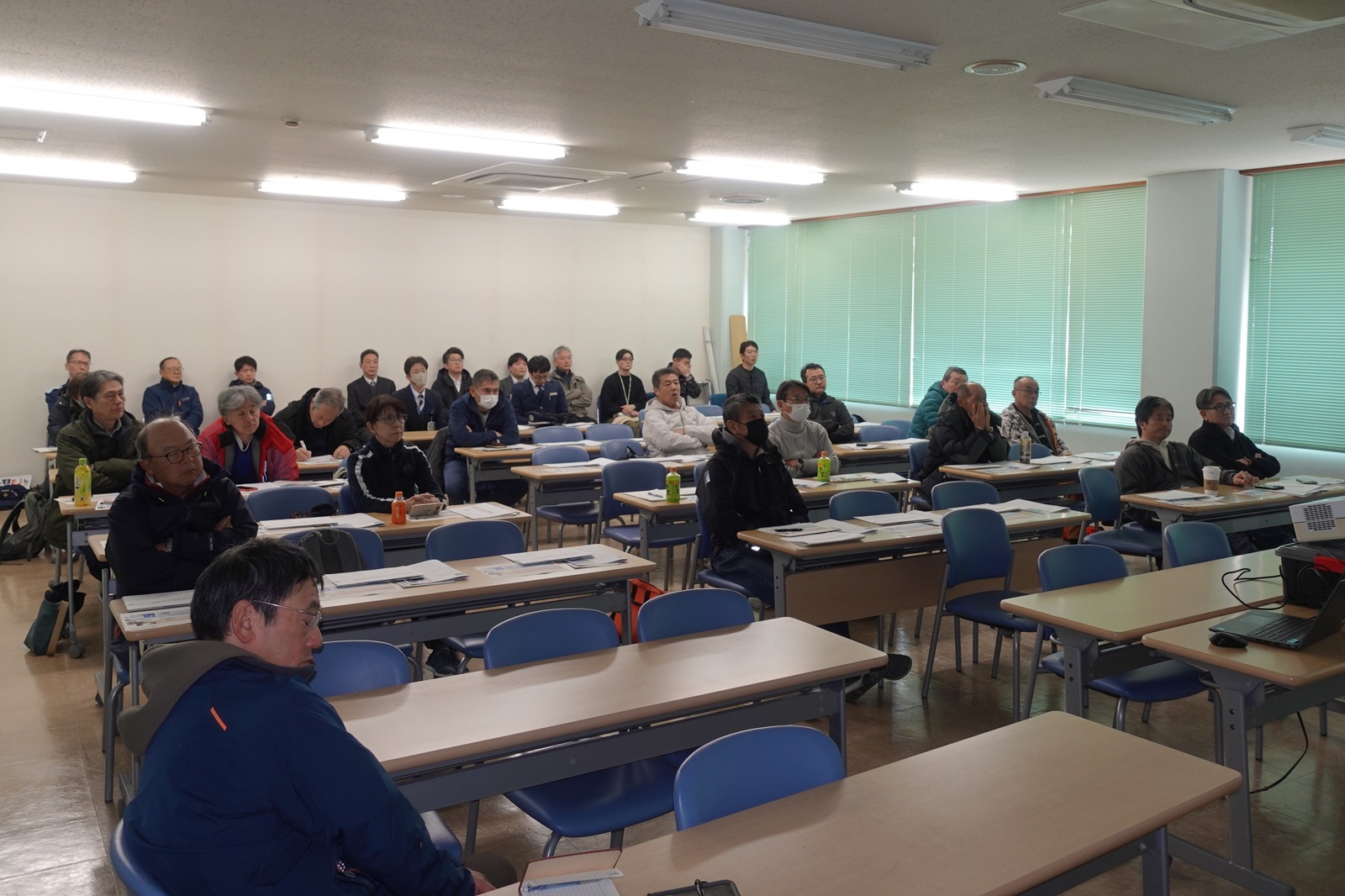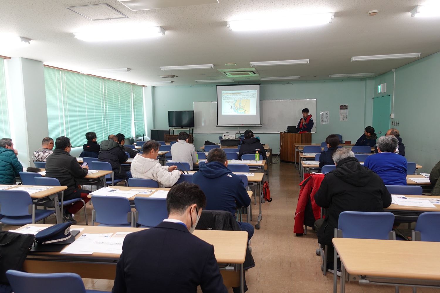 万一の事故や緊急時の対応など、クルーザーを安全に運航するための知識を習得することを目的に2014年から毎年「クルーザー安全講習会」を開催しています。今年は2月8日(日)9:30~12:15に、福岡市ヨットハーバー管理事務所が主催し、博多湾をベースに活動する博多ヨットクラブ、福岡ヨットクラブ、オモイノママヨットクラブ協力のもとに開催し、クルーザーのオーナー、クルーの皆さん28名が参加しました。当日は今冬一番の寒さと衆議院議員選挙の投票日と重なったため、例年より参加者が少なかったです。博多ヨットクラブ、福岡ヨットクラブともに今年のシリーズレースが3月から始まるためシーズン開幕前のタイミングで開催したものです。