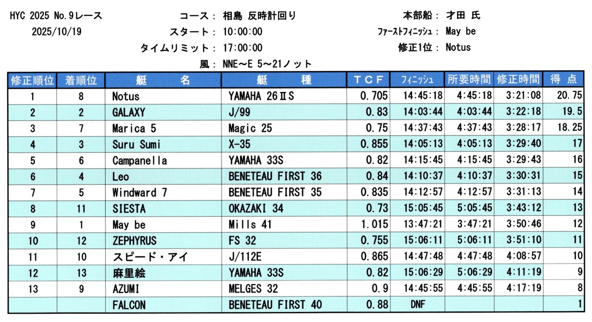 2025年 第9レース結果